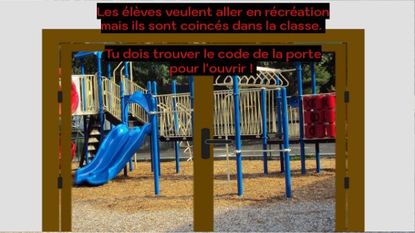 Les élèves veulent aller en récréation mais ils sont coincés dans la classe. Tu dois trouver le code de la porte pour l'ouvrir !