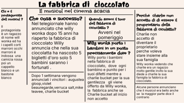 Nel telegiornale hanno annunciato che Willy wonka dopo 15 anni ha riaperto la fabbrica di cioccolato Willy annuncia che dentro alla sua cioccolata nascosto 5 biglietti d'oro solo 5 bambini saranno i fortunati .