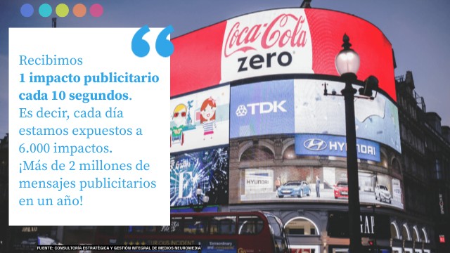 Recibimos 1 impacto publicitario cada 10 segundos. Es decir, cada día estamos expuestos a 6.000 impactos. ¡Más de 2 millones de mensajes publicitarios en un año!