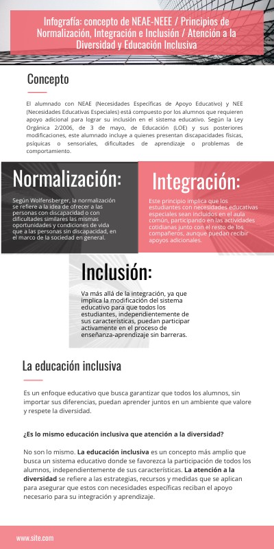 Infografía: concepto de NEAE-NEEE / Principios de Normalización, Integración e Inclusión / Atención a la Diversidad y Educación Inclusiva