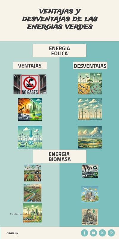 1. Tipo de energía elegida: Energía marina. Hemos elegido la energía marina porque es una fuente constante e inagotable, ya que el movimiento de las mareas y corrientes oceánicas ocurre de manera regular. Este tipo de energía se relaciona directamente con nuestros estudios de física, ya que implica el análisis de fuerzas, movimiento y transferencia de energía. También se conecta con química, ya que el entorno marino requiere materiales resistentes a la corrosión y procesos químicos específicos para su mantenimiento. En geometría analítica, se pueden analizar trayectorias y movimientos de las corrientes. La instalación de plantas de energía marina también puede abordarse desde una perspectiva literaria y cultural, considerando su impacto en las comunidades costeras. Beneficios generales: La energía marina es una fuente renovable y constante que no depende de factores climáticos, lo que garantiza una producción estable. Además, no genera emisiones de gases contaminantes, lo que contribuye a la reducción del efecto invernadero. Impacto en el medio ambiente y la sociedad: La energía marina puede ayudar a reducir la dependencia de combustibles fósiles y minimizar la huella de carbono. Sin embargo, su instalación puede afectar a la fauna marina y los ecosistemas costeros, lo que requiere una planificación cuidadosa para minimizar daños ambientales y garantizar una integración sostenible con las comunidades locales.