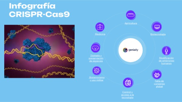 Armas biológicas: CRISPR podría ser usado para crear virus o bacterias resistentes a tratamientos. Soldados genéticamente modificados: La manipulación genética podría utilizarse para mejorar el rendimiento físico de soldados, con implicaciones morales graves. .