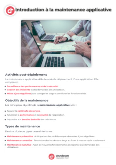 La maintenance applicative débute après le déploiement d'une application. Elle comprend :