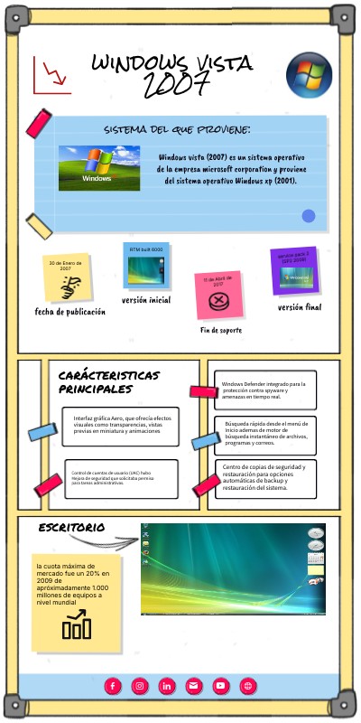 Windows vista (2007) es un sistema operativo de la empresa microsoft corporation y proviene del sistema operativo Windows xp (2001).