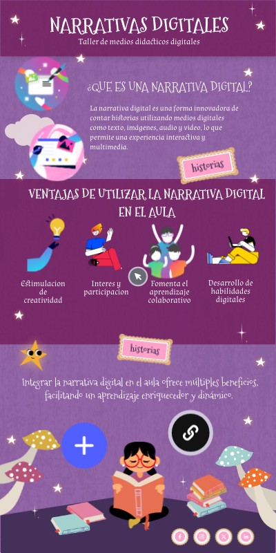 Integrar la narrativa digital en el aula ofrece múltiples beneficios, facilitando un aprendizaje enriquecedor y dinámico. Conoce mas sobre ello dandole click a los siguientes enlaces