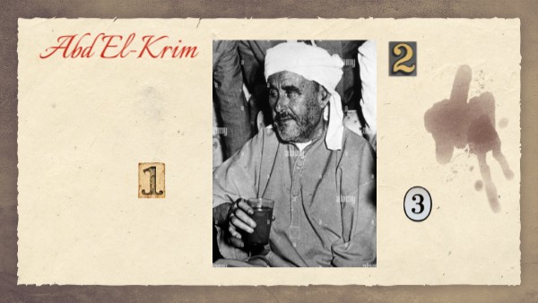 Abd el-Krim, nacido en Axdir en 1881 y fallecido en El Cairo en 1963, tenía el nombre completo de Muhammad Ibn 'Abd el-Karim El-Khattabi. Fue un político y líder militar de la región del Rif que lideró la lucha contra el dominio colonial español y francés durante la Guerra del Rif. También fue presidente de la breve y autoproclamada República del Rif, desde 1923 hasta 1926. Después de que los rifeños fueron derrotados, los franceses lo deportaron a la Isla de Reunión, donde vivió hasta 1947. Después de conseguir escapar, encontró refugio en Egipto.