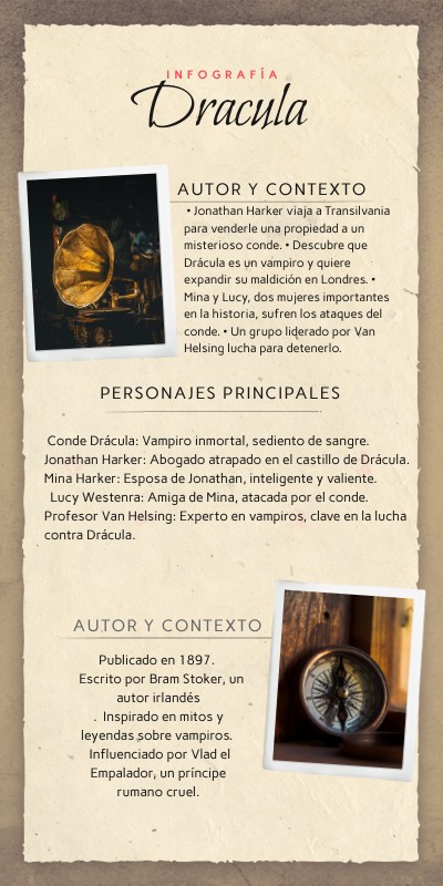 Publicado en 1897. Escrito por Bram Stoker, un autor irlandés . Inspirado en mitos y leyendas sobre vampiros. Influenciado por Vlad el Empalador, un príncipe rumano cruel.