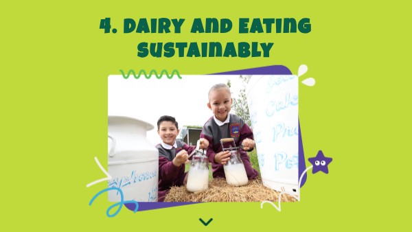 1. Design a poster for your local milk brand or your School Milk Scheme. Include the Farmed in the Republic of Ireland guarantee. Create a slogan (a short and catchy phrase) and a description about your milk that will convince people to buy local! Display your poster in the classroom.