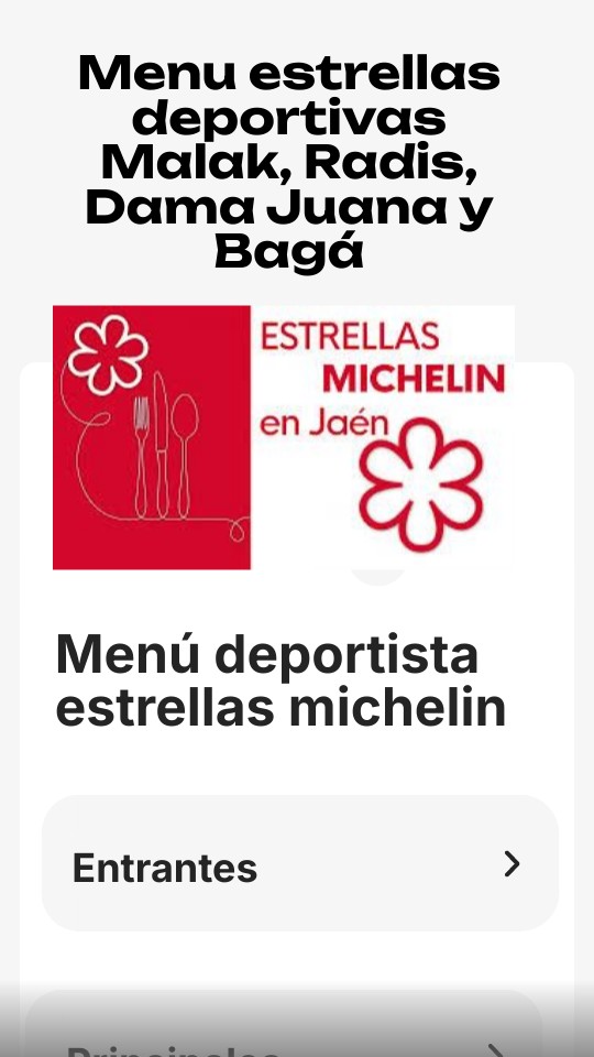Menu estrellas deportivas Malak, Radis, Dama Juana y Bagá