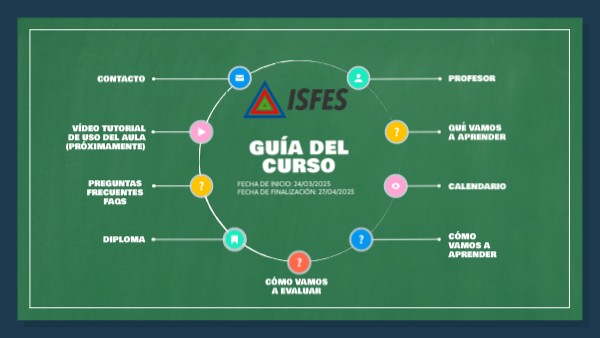 - Para cualquier consulta sobre el desarrollo del curso o del temario, ponte en contacto por mensaje directo con el tutor desde la sección de Mensaje al Profesor en la parte superior derecha de la página principal del curso o en el enlace de esta Guía interactiva en la información "Profesor".