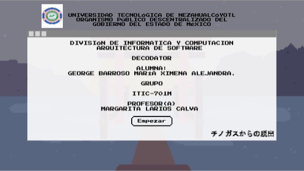DIVISIÓN DE INFORMATICA Y COMPUTACION Arquitectura de software Decodator AlumnA: George Barroso María Ximena Alejandra. Grupo ITIC-701M Prof
