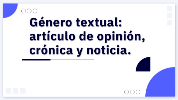 Género textual: artículo de opinión, crónica y noticia.