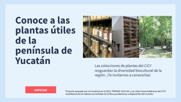 Proyecto apoyado por el Conahcyt en el 2024. PRONAII-2024-84: «Las colecciones botánicas del CICY: Guardianes de los saberes ancestrales de la flora yucatanense a disposición del mundo».