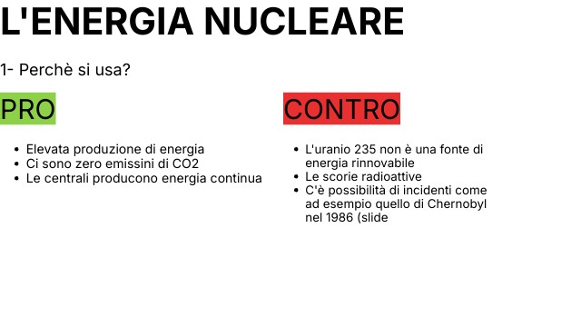 - C'è possibilità di incidenti come ad esempio quello di Chernobyl nel 1986 (slide