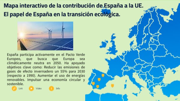 Mapa interactivo de la contribución de España a la UE.El papel de España en la transición ecológica.