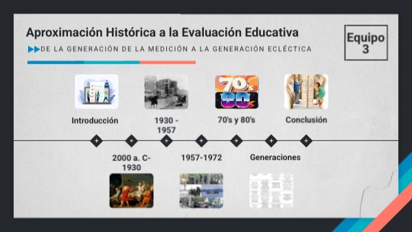 - Nace el término evaluación educativa que se remonta a la época de Tyler (1969) en los años 30
