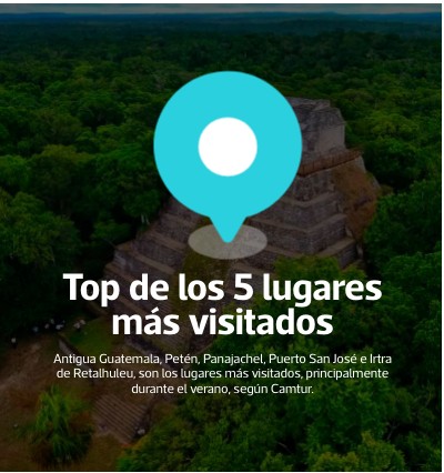 Antigua Guatemala, Petén, Panajachel, Puerto San José e Irtra de Retalhuleu son los lugares más visitados durante el verano, según Camtur.