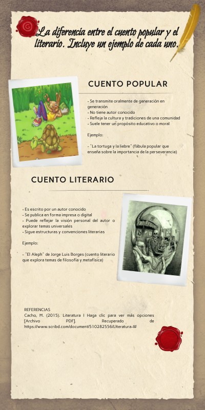 La diferencia entre el cuento popular y el literario. Incluye un ejemplo de cada uno.