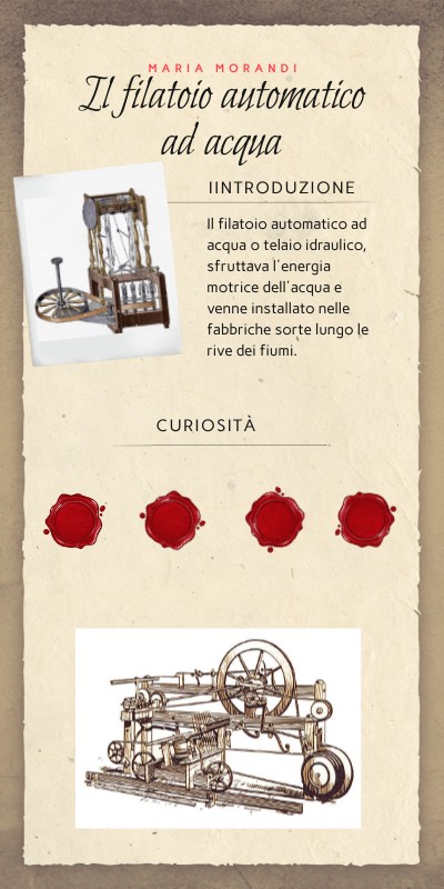 Il filatoio automatico ad acqua o telaio idraulico, sfruttava l'energia motrice dell'acqua e venne installato nelle fabbriche sorte lungo le rive dei fiumi.