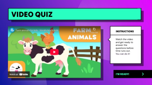 Watch the video and get ready to answer the questions before time runs out.You can do it!