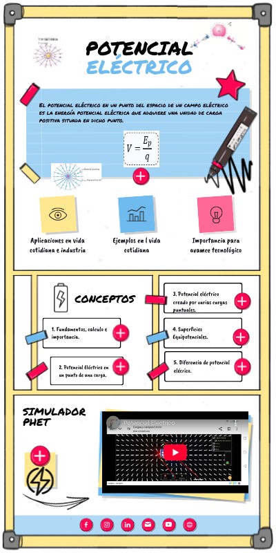 El simulador PhET sobre el potencial eléctrico nos ayuda a: Visualizar conceptos clave, como el campo eléctrico y el potencial eléctrico, de manera interactiva. Entender las líneas equipotenciales, mostrando gráficamente cómo representan zonas donde el potencial eléctrico es constante. Experimentar con configuraciones de carga, observando cómo cambian el campo eléctrico y el potencial. Relacionar con aplicaciones prácticas, conectando los conceptos aprendidos con dispositivos electrónicos y situaciones cotidianas.