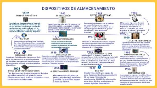 IBM presenta el primer sistema de almacenamiento basado en discos magnéticos . Formado por 55 platos de 24 pulgadas que podria almacenar un total de 5 millones de carácteres y su velocidad era de 8.800 bytes.