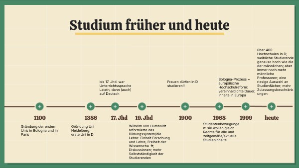über 400 Hochschulen in D; weibliche Studierende genauso hoch wie die der männlichen; aber immer noch mehr männliche Professoren; eine riesige Auswahl an Studienfächer; mehr Zulassungsbeschränkungen