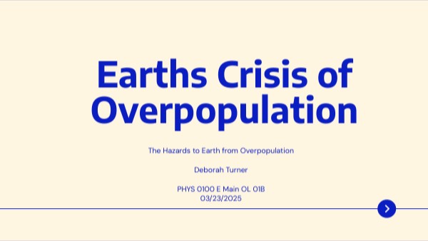 The Hazards to Earth from Overpopulation Deborah Turner PHYS 0100 E Main OL 01B 03/23/2025