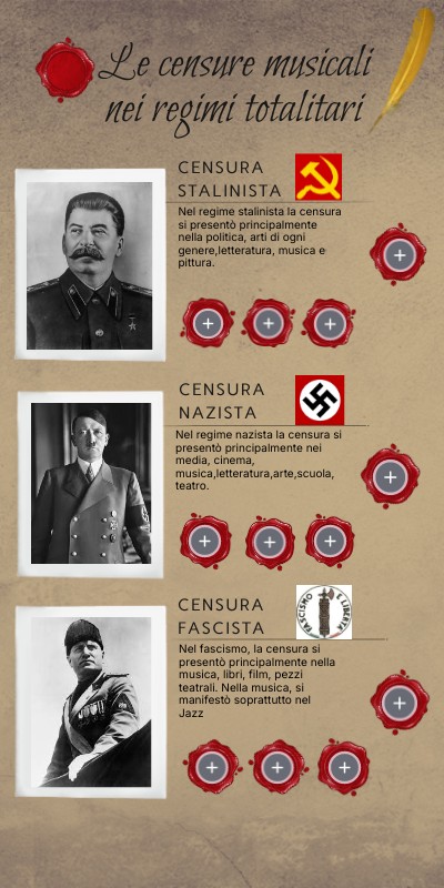 Nel fascismo, la censura si presentò principalmente nella musica, libri, film, pezzi teatrali. Nella musica, si manifestò soprattutto nel Jazz