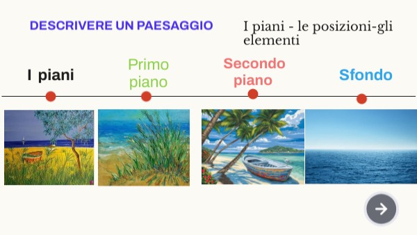 Descrivo il quadro partendo dal primo piano e da sinistra verso destra Cosa vedo? da sinistra verso destra oggetti, colori