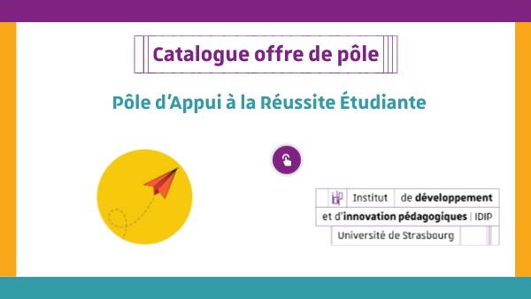 Ce catalogue s’adresse aux enseignants, aux responsables pédagogiques, aux services et aux scolarités de l’Université de Strasbourg. Il a pour objectif de vous permettre d’avoir une vue d’ensemble des actions menées par le pôle ARE afin que vous puissiez vous en emparer et les proposer à vos étudiants en fonction des difficultés qu’ils rencontrent et que vous avez pu identifier.