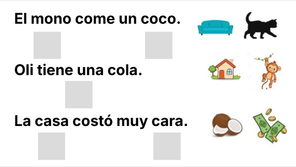 El mono come un coco. Oli tiene una cola. La casa costó muy cara.