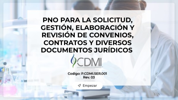 Este PNO aplica a todo personal que solicite la elaboración, revisión, formalización, registro y resguardo de Convenios, Contratos y demás documentos jurídicos que generen alguna responsabilidad contractual de parte de CDMI y que deban de ser firmado por Representantes y Apoderados de CDMI.