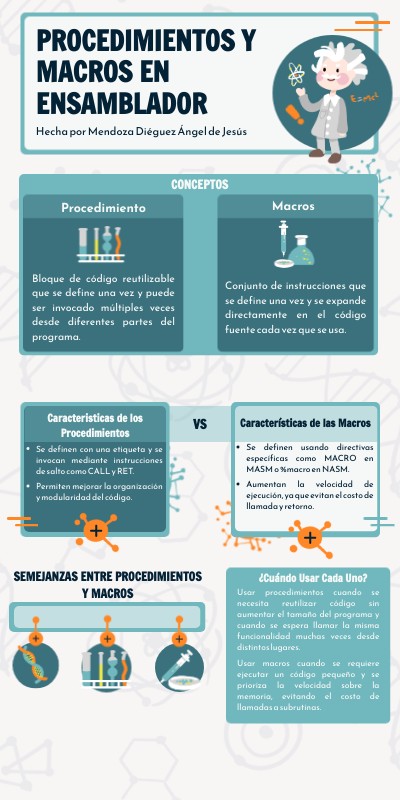 Usar procedimientos cuando se necesita reutilizar código sin aumentar el tamaño del programa y cuando se espera llamar la misma funcionalidad muchas veces desde distintos lugares.Usar macros cuando se requiere ejecutar un código pequeño y se prioriza la velocidad sobre la memoria, evitando el costo de llamadas a subrutinas.