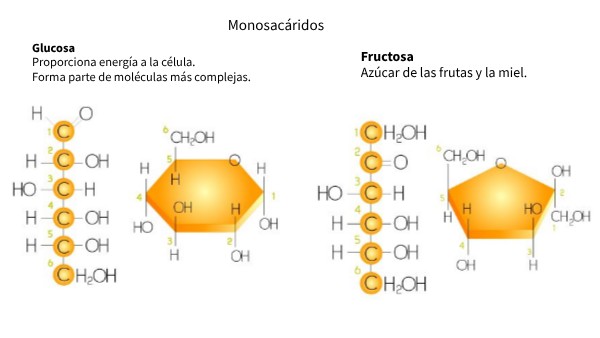 Glucosa Proporciona energía a la célula. Forma parte de moléculas más complejas.