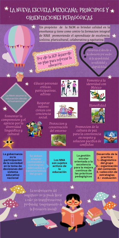 Un propósito de la NEM es brindar calidad en la enseñanza y tiene como centro la formacion integral de NNA promoviendo el aprendizaje de excelencia, icnlsiva, pluricultural, colaborativa y equitativa.