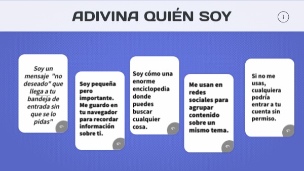 Trata de identificar el personaje antes de voltear la tarjeta. Si aciertas, haz clic en el signo ✔, y si te equivocas, selecciona ✖.