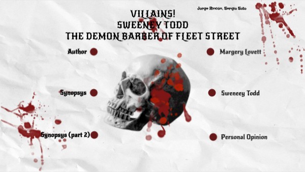 He started working for John Crook, but was later arrested for stealing and imprisoned in New Gate. There, he developed a hatred for society and learned to be a barber. When he left, he was a dark and heartless man. He opened a barbershop on Fleet Street, where he would commit hundreds of murders and transport the bodies under the church, using the flesh to make meat pies, with the help of Margery Lovett. The smell of the church would betray him, and after answering to the law, he would be sentenced to death without being hanged. Due to his actions, we think, Sweneey is a disturbed and maniac person