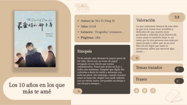 Sin embargo, la historia no es solo una historia más del montón sino que te invita a reflexionar sobre lo que es el amor y como pueden haber altibajos en las relaciones de muchos años pero cuando de verdad ahí no hay amor se refleja en las acciones de ambas personas y saben que tienen que separase para avanzar como personas, pero también a reflexionar de como tenemos a alguien tan importante en nuestra vida y que por solo emociones pasajeras las perdemos y como nos arrepentimos de eso. Es una historia profunda, llena de altibajos y tristezas que ocultan las pesonas que más sonrien, que siempre estan para nosotros pero que nadie esta para ellos. Una historia que te invita a la reflexion y comprensión de las relaciones que tenemos con todos.