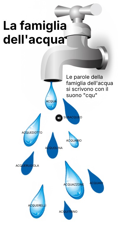 Le parole della famiglia dell'acqua si scrivono con il suono "cqu"