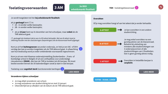 (*) geslaagd zijn betekent dat je een A of B-attest behaalde. Met een B-attest moet je rekening houden met de clausuleringen (beperkingen) die de klassenraad heeft opgelegd.