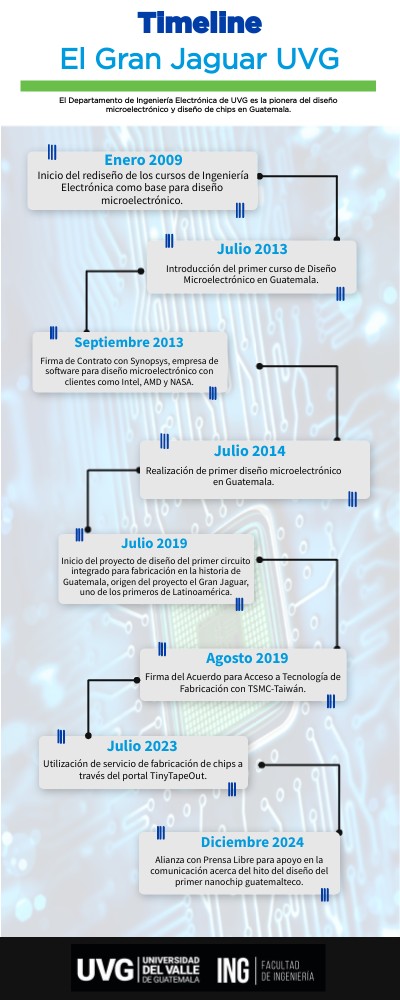 Timeline de El Gran Jaguar, el primer nanochip diseñado en Guatemala por Universidad del Valle de Guatemala UVG