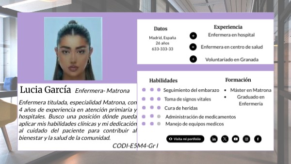 Enfermera titulada, especialidad Matrona, con 4 años de experiencia en atención primiaria y hospitales. Busco una posición dónde pueda aplicar mis habilidades clínicas y mi dedicación al cuidado del paciente para contribuir al bienestar y la salud de la comunidad.