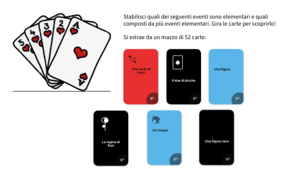 Stabilisci quali dei seguenti eventi sono elementari e quali composti da più eventi elementari. Gira le carte per scoprirlo! Si estrae da un mazzo di 52 carte: