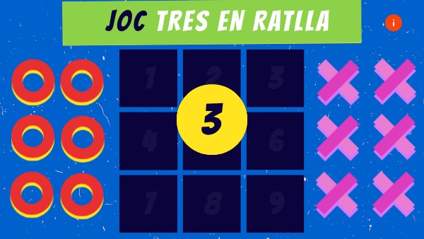 ES JUGA ENTRE 2 JUGADORS. CADASCÚ ESCULL UNA FORMA (O o X). A CADA TORN UN JUGADOR COL·LOCA UNA FITXA QUI ACONSEGUEIX COL·LOCAR 3 FITXES SEGUIDES EN UNA LÍNIA HORITZONTAL, VERTICAL O DIAGONAL GUANYA LA PARTIDA UN COP S'OMPLEN TOTS ELS ESPAIS DISPONIBLES SI NINGÚ ACONSEGUEIX UBICAR 3 FITXES SEGUIDES LA PARTIDA ACABA AMB EMPAT