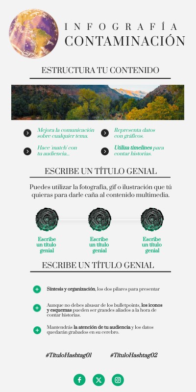 Es clara y estructurada para poder transmitir información de forma ordenada y jerárquica, y conseguir hacer llegar el contenido que emociona al cerebro. Para ello, la animación y la interactividad son dos pilares fundamentales.Etiquetas, ventanas, enlaces, audios... Con Genially puedes incluir cualquier tipo de interactividad para añadir contenido adicional y añadirle una animación de cara a captar la atención de tu audiencia.