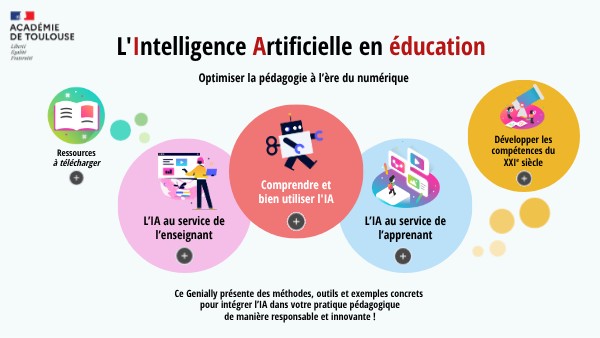 Ce Genially présente des méthodes, outils et exemples concrets pour intégrer l’IA dans votre pratique pédagogique de manière responsable et innovante !