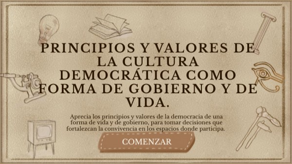 Aprecia los principios y valores de la democracia de una forma de vida y de gobierno, para tomar decisiones que fortalezcan la convivencia en los espacios donde participa.