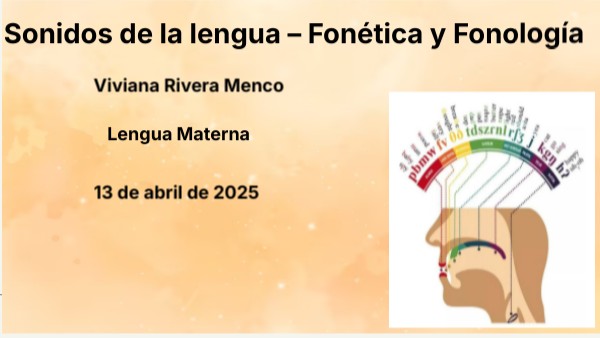 Esta presentación digital sobre los sonidos de la lengua (fonética y fonología) se realizó como parte del proceso de apropiación temática individual, orientado a profundizar en uno de los componentes esenciales de la lingüística. Se eligió este formato con el propósito de presentar los contenidos de forma clara, atractiva e interactiva, facilitando su comprensión y su posterior aplicación en entornos educativos. Además, esta presentación está pensada como una base para diseñar actividades complementarias como talleres, juegos o dinámicas didácticas, promoviendo así un aprendizaje significativo desde una perspectiva crítica y creativa.