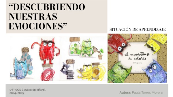 Esta situación de aprendizaje surge del análisis de las necesidades de la etapa que nos ocupa.Nuestro alumnado está en un momento clave de desarrollo emocional, por esta razón es fundamental crear una situación de aprendizaje que les ayude a identificar y expresar sus emociones.Para ello, se desarrollan siete sesiones, cuyo objetivo principal es desarrollar la inteligencia emocional del alumnado, mediante el reconocimiento, expresión y gestión de emociones básicas, como son la alegría, tristeza, rabia, miedo y calma.Inspirándose en el libro “El Monstruo de Colores”, el cual nos facilita la comprensión de sentimientos a través de colores y actividades lúdicas. Esta propuesta favorece el bienestar infantil y la adaptación escolar de forma efectiva y significativa, fomentando la autorregulación emocional y la identificación de las mismas.